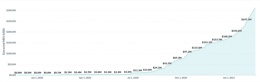 图 1:自 2020 年 1 月 1 日以来累积提取的 MEV(以美元计算)