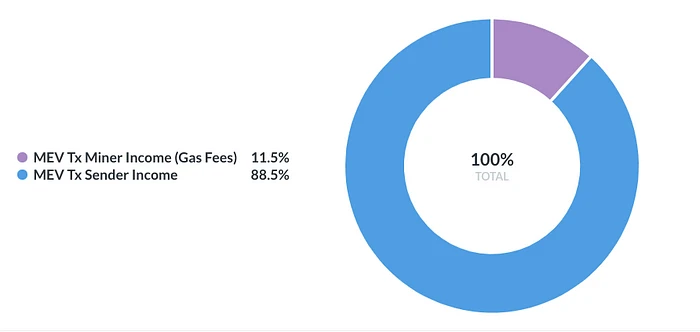 图 4:自 2020 年 1 月 1 日以来,MEV 交易发送者与 MEV 交易矿工(Gas费)之间提取的 MEV 分割