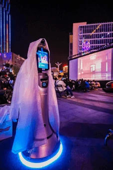 在此背景下,集智能化与无接触为一体的服务机器人,成为推动行业变革和服务升级的新动能。拿猎户星空旗下的机器人来说,相较于人工,智能服务机器人成本较低,且专业知识更丰富,能为参会者提供更为优质高效的服务,同时智能机器人独特的形象可以更高效地引流,在数据处理方面更为高效,效率媲美互联网。