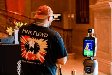 刚到影展门口,就可以看到智能红外测温机器人志愿者“豹小秘”在为大家服务,堪称志愿者里的“门面担当”,它利用红外测温技术,代替人工手持体温枪,实现“无接触式”的体温测量操作,测温精准度可达到±0.3℃以内,检测速度非常快,可以达到 5人/秒,响应时间毫秒级,“硬核”保障了影展现场超大人流量的测温疫情防控,减少了影展工作人员的工作量。