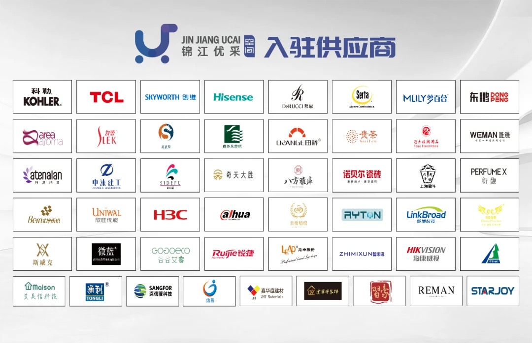 一是海量供应种类。据了解,锦江优采空间聚合30多个筹建、运营及服务的核心品类,包括棉织品、床垫、一次性客用品、电视机、空调、香氛及衍生品、瓷砖、地板、网络设备、客控设备、施工服务、食品饮料等等。同时入驻近60家头部供应商的产品及服务解决方案,海信、TCL、创维、慕思、梦百合、东鹏、科勒等多赛道知名品牌已成功入驻。