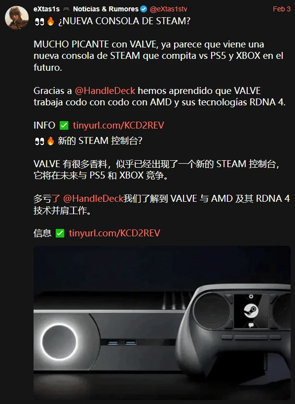 据外媒报道,Valve可能正在开发一款名为“Steam console”的新游戏硬件,可能会使用AMD的新型RDNA 4 Radeon RX 9070 GPU。这款设备可能提供类似于游戏机和PC的混合体验,并可能采用Steam Deck的SteamOS操作系统。