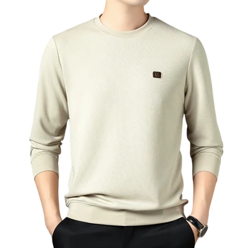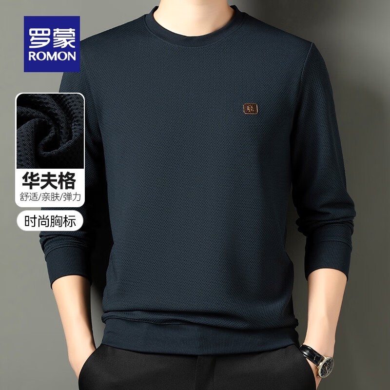 罗蒙(ROMON)男士长袖T恤圆领卫衣春秋款中青年百搭网眼提花套头打底衫上衣 藏青色 175