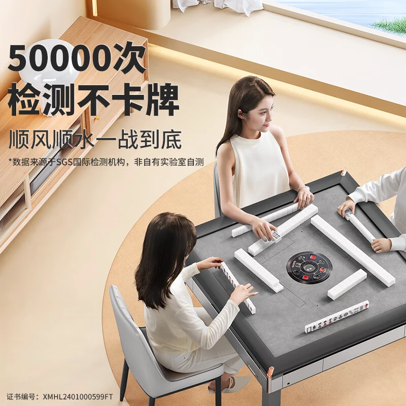 如喜电动麻将桌,真系好嘢!特别系一键低音2.0系统,48分贝静到估唔到,夜深搓麻都唔怕吵到屋企人。SGS权威检测,证明佢连续运行10000次都无故障,低音又稳。而且,佢嘅洗牌速度好快,50.8秒就搞掂,唔使等得耐。最紧要系,佢有紫外线杀菌,玩得放心又卫生。
