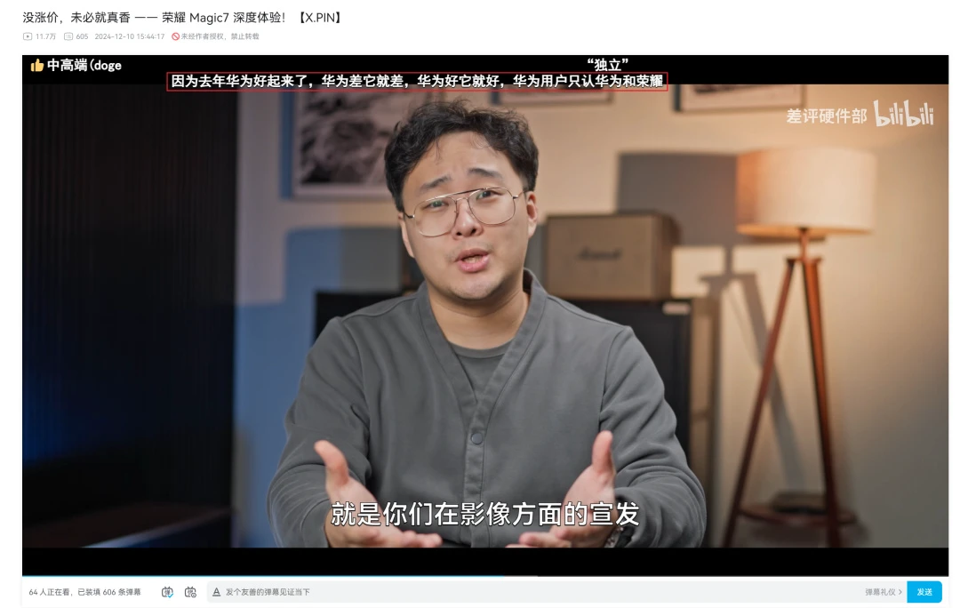 你可别觉得这不算啥问题,因为托尼发现,华为和荣耀都分手 4 年了,还是有人在我们之前的视频里发弹幕:华为用户只认华为和荣耀。甚至线下也还是有人在把荣耀当成华为的平替去买。