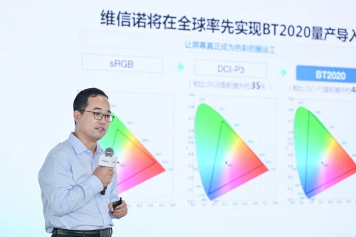BT2020是目前覆盖最广的色域标准,相比上一代色域标准DCP-P3,BT2020的色彩覆盖范围提升约40%,能覆盖自然界中更广泛的色彩范围,带来超现实视觉体验。维信诺将在全球率先实现业内最高BT2020量产导入,引领更极致的显示色彩美学变革。