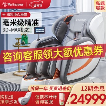美国西屋3D按摩椅S700采用先进的按摩技术,配备多种按摩手法和程序,能够模拟人手揉捏、推拿等多种按摩方式,给身体带来全面的舒适感受。无论是舒缓肌肉疲劳还是缓解压力,它都能够满足你的需求。而且,它还具备零重力功能,让你在享受按摩的同时感受到身心的完全放松。
