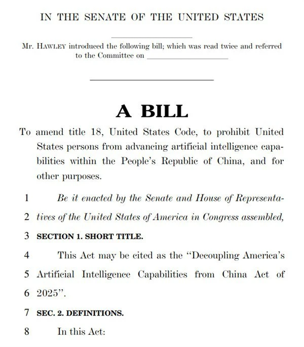 据媒体报道,美国国会近日提出了一项名为《2025年美国人工智能能力与中国脱钩法案》的新法案,核心是禁止美国人在中国境内推进AI能力,中美在AI领域彻底脱钩。而任何下载或使用DeepSeek的行为将被定性为犯罪,最高可判处20年监禁。