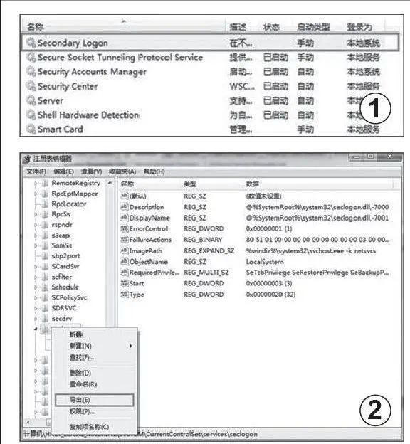 解决办法:这里建议尝试重新安装该程序以解决此问题,把被系统优化软件禁用的Secondary logon服务重新打开(如图1)。如果系统提示“在本地计算机无法启动Secondary logon服务,报告错误127:找不到指定的程序”,可先确认C:\windows\system32\目录下是否存在“seclogon.dll”,并从可以正常运行的系统中导出 HKEY_LOCAL_MACHINE\SYSTEM\CurrentControlSet\Services\seclogon 的所有键值,再导入到有问题的系统上,然后启动该服务就可以解决了(如图2)。