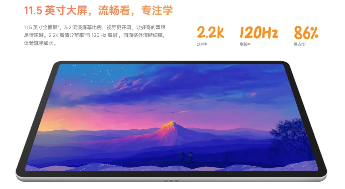 11.5"分辨率为2200 × 1440,229 ppi,120Hz刷新率,有柔光屏可选。