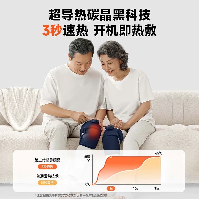 这款膝盖按摩仪的加热速度非常快,3秒就能速热,而且有3档温度可以调节,四季都可以用。它的NTC智能温控系统,能保证温度稳定,使用起来非常安全。
