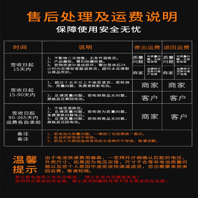 该电池具有365天免费换芯服务,以及全国包安装补贴,体现了厂家对产品质量的自信和对消费者的贴心服务。此外,电池还赠送原装充电器,并提供15天免费试用,让消费者在购买前有足够的时间进行试用和检验。