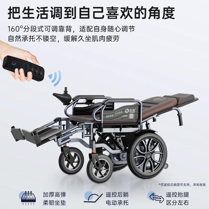 这轮椅啊,功能齐全,能载人、能平躺,智能电动,给你更多出行方案。想要独自溜弯,或者两人一同出行,这都不是问题。而且,这轮椅的舒适度、性价比,都是五颗星,简直就是轮椅界的豪华款!