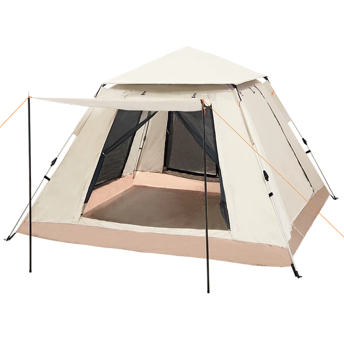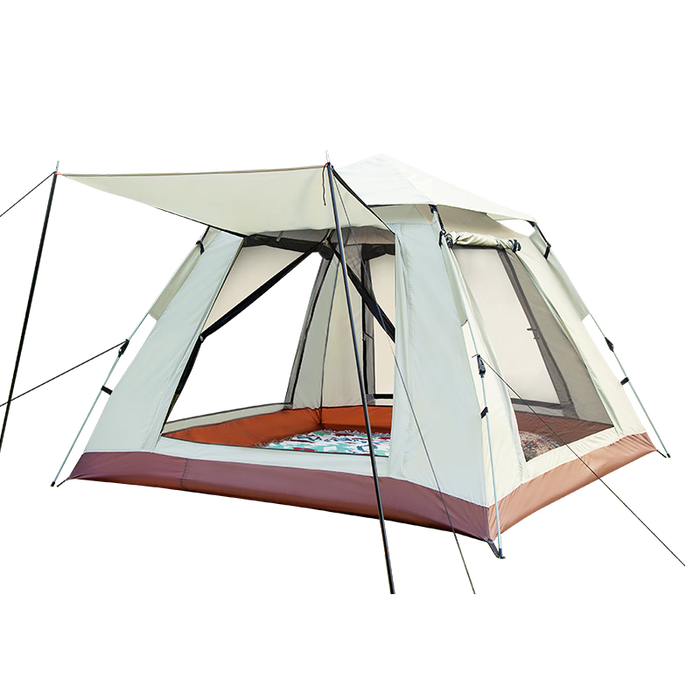 OFEIS全自动3-4人天幕帐篷,采用210D高密牛津布,有效隔绝99%紫外线,防晒防风防水。其防水涂层达到PA 1000,水压指数PU2000,确保短暂防雨需求。帐篷支架升级8代加粗,抗风5级,耐用性提高35%,稳固不易弯曲。高密度网纱防蚊同时保证通风,前后门厅互通设计,促进空气流通。独特的一键速开黑科技,简化搭建过程,3-4人空间宽敞,满足家庭或朋友户外活动需求。