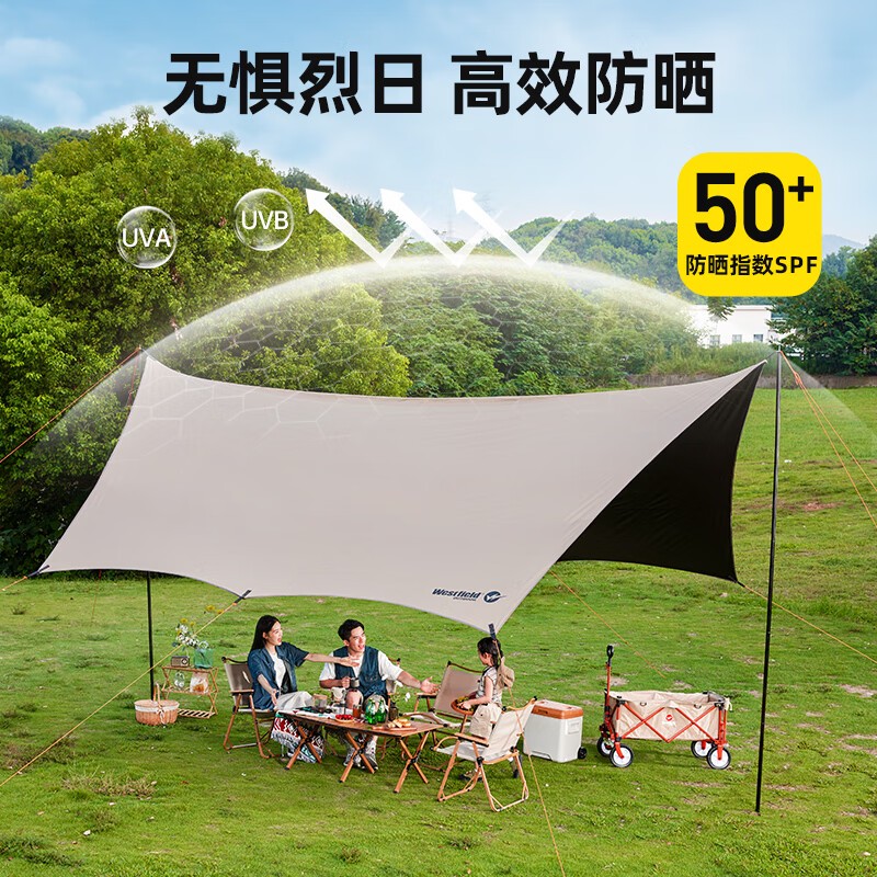 WestfieldOUTDOOR我飞黑胶天幕帐篷,防晒遮阳全方位覆盖,适合家庭聚会、公司团建等多种场景。提供13m²、20m²、26m²三种尺寸,满足不同人数需求。防晒指数UPF>50,阻隔99.99%紫外线,有效保护皮肤。加厚黑胶材质,体感降温21°C,夏日露营更清凉。帐篷杆高达260cm,直径2.5cm,壁厚1.0mm,稳固抗风。经过25项权威检测,面料无甲醛、无异味,安全环保。荧光式地钉、铝合金风绳扣等细节设计,提升露营体验。