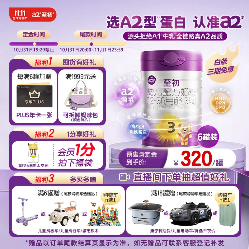 a2至初3段奶粉850g*6:a2品牌以其独特的A2蛋白奶粉而闻名,适合对普通牛奶蛋白过敏的婴幼儿。