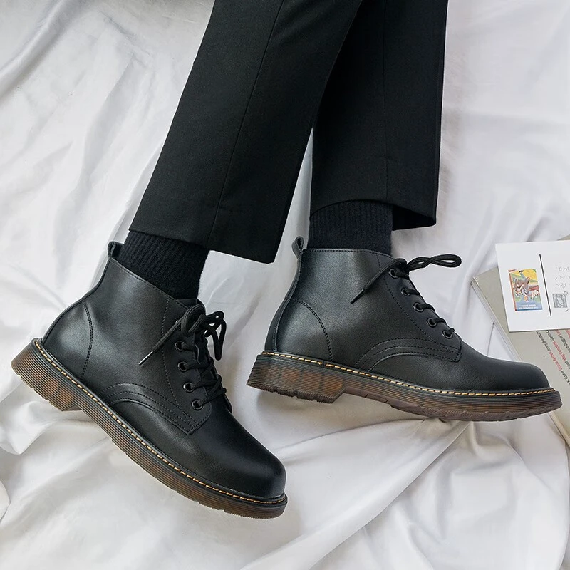 本人尤为欣赏其精致鞋面与局部臌胀设计,赋予鞋子独特的体积感和立体感,让简约的马丁靴更显层次。而鞋身冲孔及鞋头做旧擦色工艺,则强调了细节和质感,使整靴更具特色。