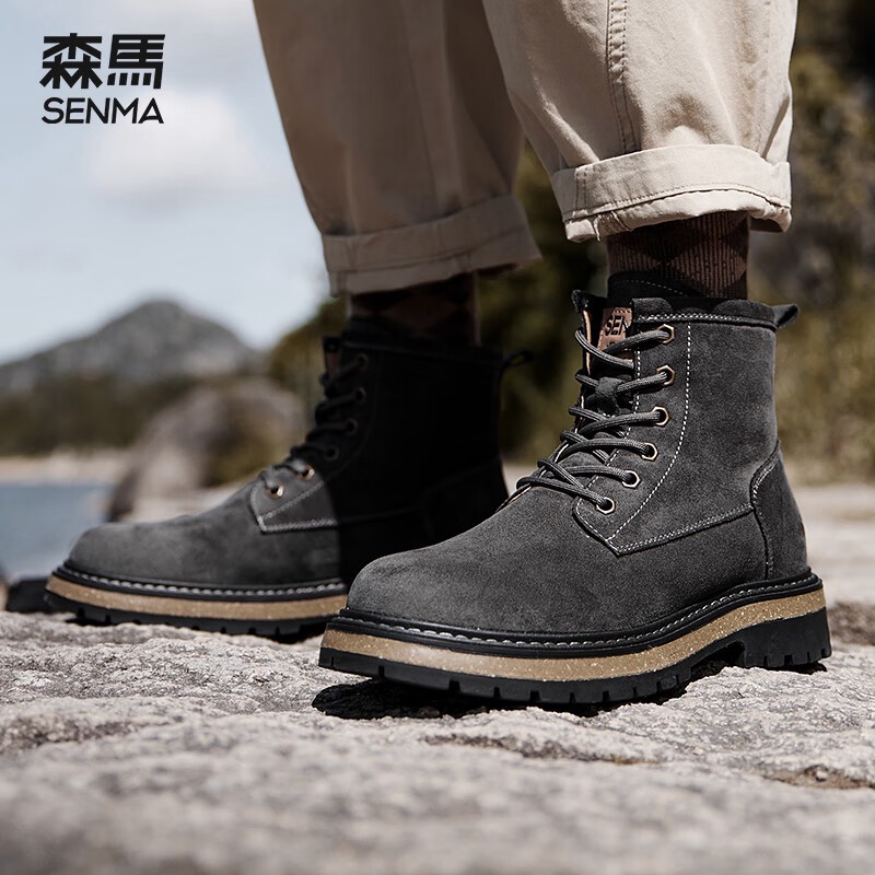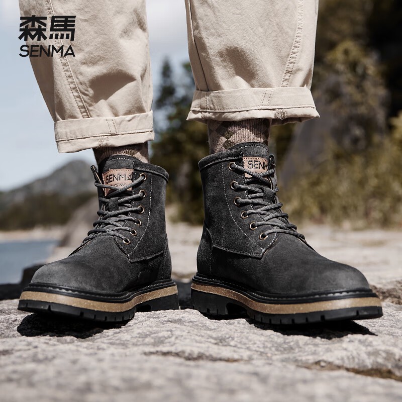 哎呦喂,瞧一瞧,看一看了喂!这双SENMA的马丁靴,42码,灰色大黄靴,简直是男士们的福音啊!穿上它,走遍天下都不怕!