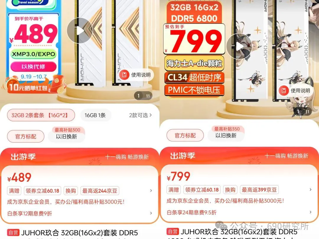 但是更高的频率,也就意味着更高的价格,5600Mhz的D5内存跟6800Mhz的D5差价能达到三百元,一些高端内存,差价更是高达千元。