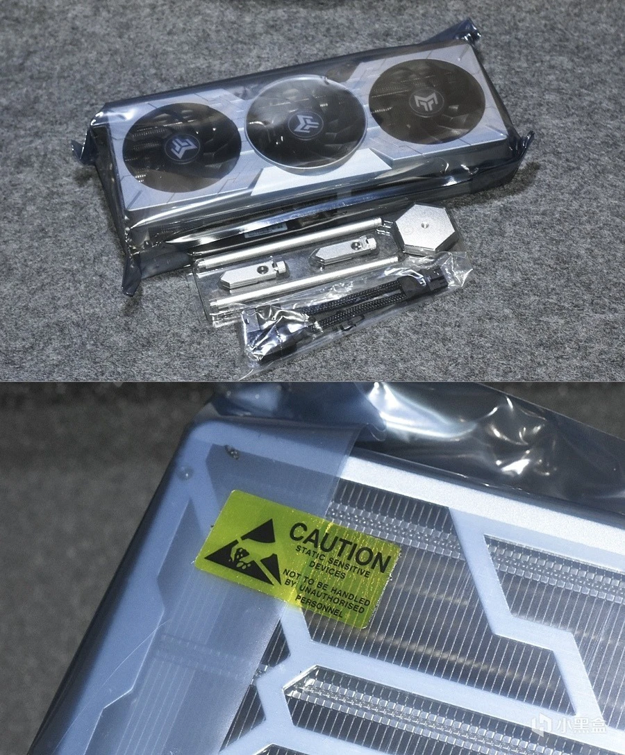 内部包括一块影驰RTX4070Ti SUPER金属大师电竞显卡、一套支架、一根双8PIN转12VHPWR的供电线,静电袋封口处有黄色密封条,确保到手为全新。