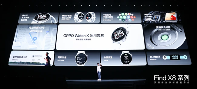 随着Find X8系列的发布,OPPO还推出了旗下首款Pro级平板OPPO Pad 3 Pro、千元内最强旗舰耳机OPPO Enco X3、全智能手表新标杆OPPO Watch X冰川岩灰,为用户提供全面领先的旗舰全家桶体验。