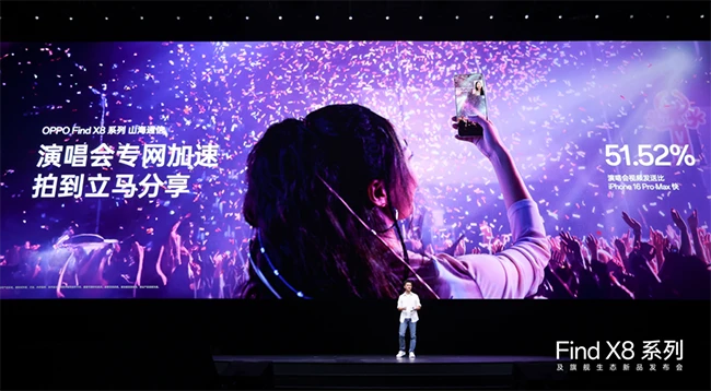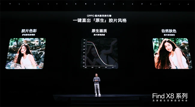 Find X8系列为专业哈苏人像带来全新的三套胶片风格——NC、CC、NH,以及全新的柔光人像效果,帮助用户一键直出更具氛围感的人像大片。将前沿的AI大模型与精密的潜望长焦摄像头结合,OPPO为Find X8系列实现颠覆性的AI千里长焦,让30倍变焦也好看,60倍变焦更有超越视野的清晰度。全焦段杜比世界HDR视频拍摄在Find X8上,结合全新的智能场景,为演唱会拍摄提供更具临场感的视频表现力。