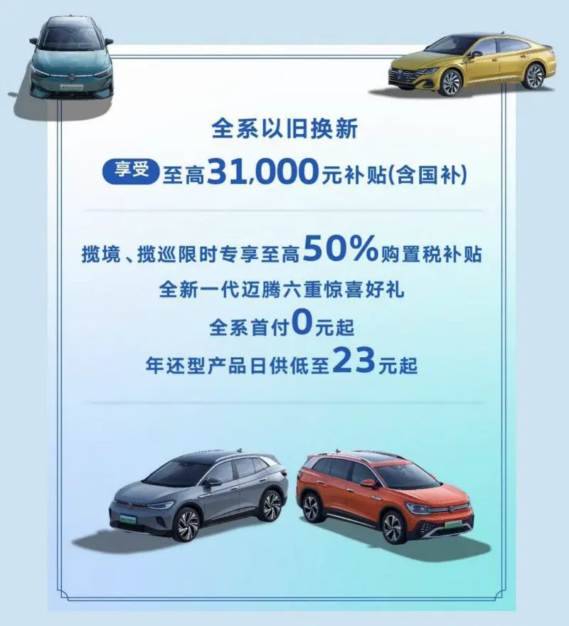 何为大实惠?年终购车季叠加一汽-大众大众品牌2000万辆整车下线购车优惠,涵盖综合购置税补贴、置换补贴、金融贴息以及现金直降等,将消费者的购车冲动直线拉满。