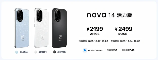 10月17日上午10:08,nova 14 活力版正式在华为商城、华为授权电商等渠道同步开启预售,售价2199元起,并将于10月24日正式开售。这款定位2000元档的5G手机,凭借前后双5000万影像、鸿蒙AI、时尚颜值和稳定的通信,精准契合年轻群体的用机需求,堪称2000元档最值得买的手机。