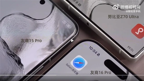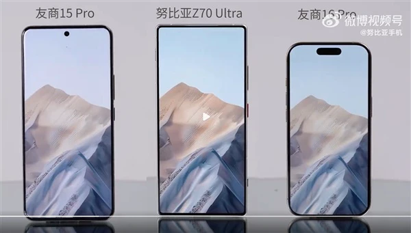 在预热视频中,努比亚晒出了Z70 Ultra与竞品iPhone 16 Pro的真机对比照,可以看到,努比亚Z70 Ultra真全面无孔屏的视觉效果更为惊艳,屏占比更高,远好于iPhone 16 Pro。