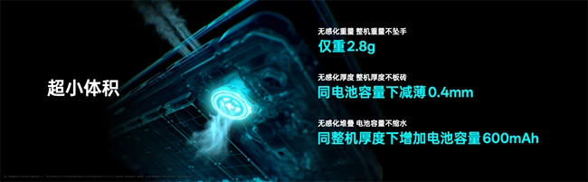 释放更多空间供其他模块堆叠,同整机厚度下增加电池容量600mAh,堪称模组设计新标杆。