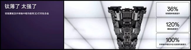 OPPO Find N5通过创新的钛合金工艺、OPPO第二代自研超强钢OPHS,在翼板部分实现了120%的强度提升,100%的外转轴中框冲击与跌落性能提升,以及36%的铰链整体刚性提升。