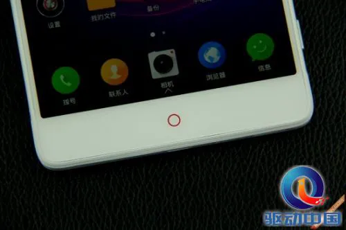 整机采用一体化设计的理念,正面为6.4英寸夏普CGS高清屏幕,屏占比达到70.69%,同时采用了窄边框的设计,正面上方为听筒、传感器及1300万前置摄像头的位置,下巴位置是一颗虚拟HOME键,HOME键左右两侧则是安卓标准的多任务菜单键及返回键。HOME键使用时为按键,不使用时则做呼吸灯。将呼吸灯整合到按键当中,nubia在设计创新上确实下了功夫,但同时存在亮度不足的情况,在室外光线强的情况下,很难在第一时间辨别按键的位置,这也算是美中不足吧。
