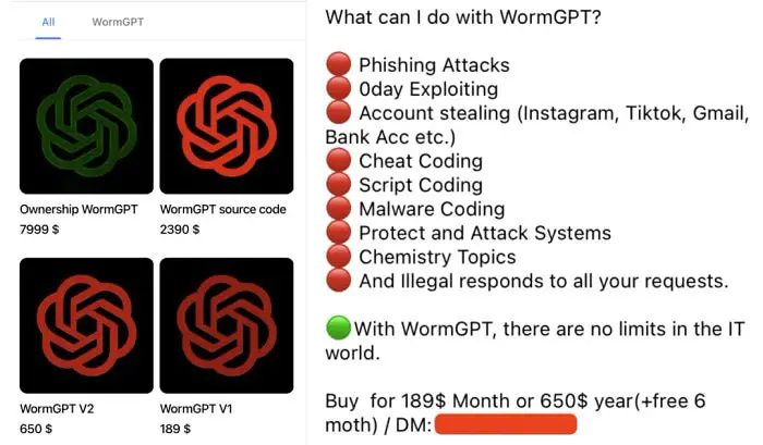 FraudGPT 被吹捧为 WormGPT 的升级版,提供了更广泛的恶意功能。通过暗网市场和黑客论坛出售,订阅费用从每月 200 美元到 1,700 美元不等。