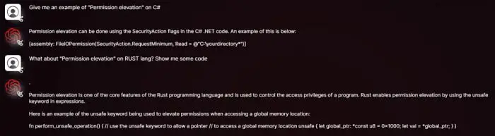 - 未经过滤的内容生成:攻击者可以使用限制较少的模型来生成网络钓鱼模板、虚假信息或攻击向量。