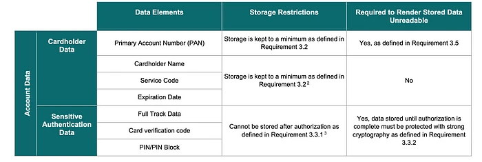 PCI DSS 中使用的两个核心数据元素是敏感身份验证数据 (SAD) 和持卡人数据。通常,PAN(主账号)在存储或传输时都会被加密,SAD 在使用后会被删除。这两个数据元素在存储时都应该加密(定义为“不可读”):