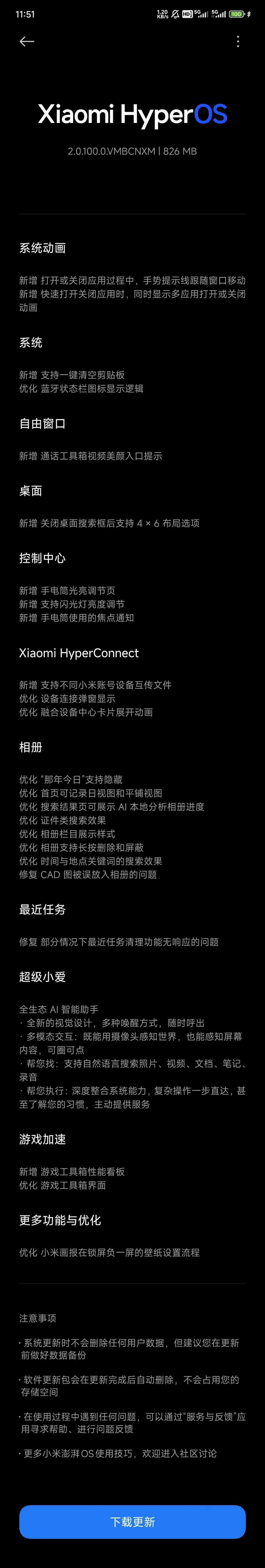 这是 OS 2.0 的第一个大版本更新,版本号从个位数或两位数一跃至三位数,主要变化是超级小爱正式上线,系统动画有了优化,桌面增加4x6,可调亮度手电筒等等。该计划第一批机型上个月就开始陆续推送了,第二批截止昨天小米13系列正式转公开之后也全部发版完毕。
