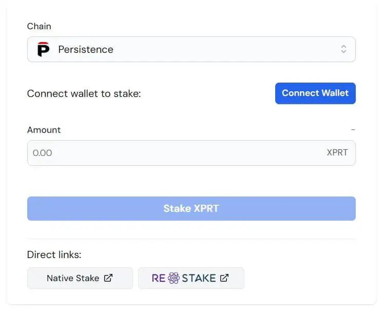 Persistence One 为传统的 XPRT 质押提供了多种便捷的选择。你可以使用 Keplr 钱包,直接通过 Keplr 的 在线平台 质押你的 XPRT,或者使用 Persistence 的原生 pWallet 获得无缝体验。