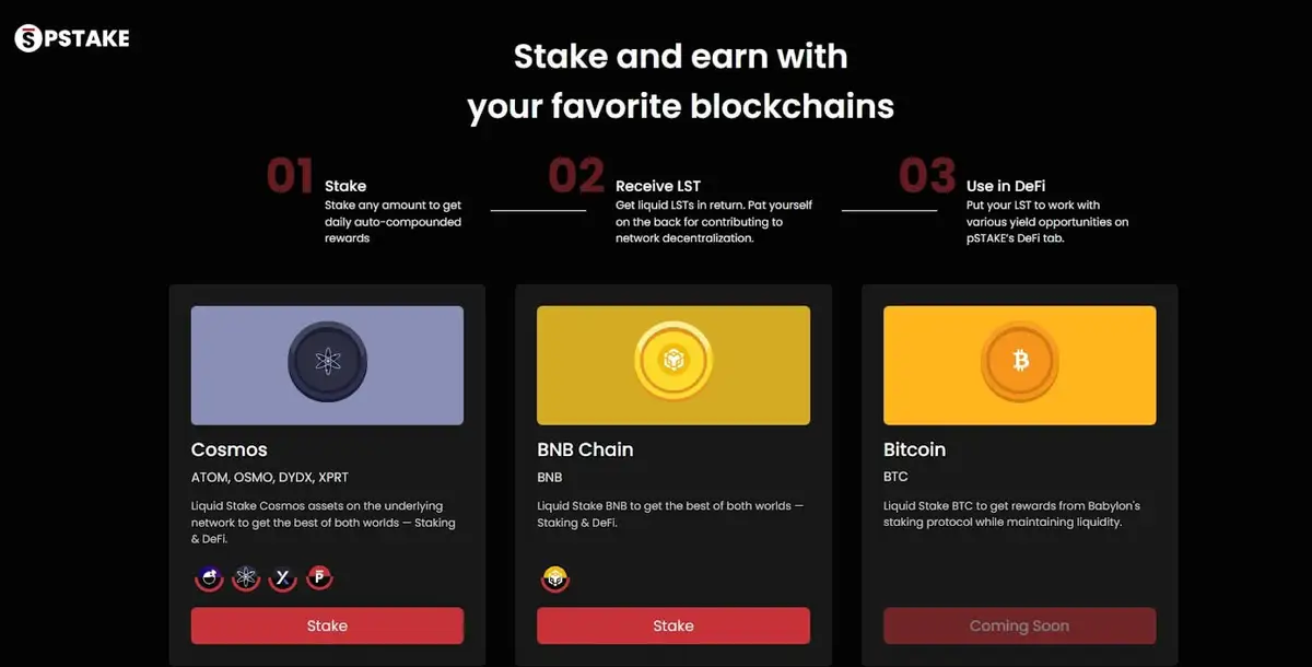 pSTAKE Finance: 一个关键的 dApp,能够通过流动性质押代币 (LST) 在多个 PoS 网络上进行质押。