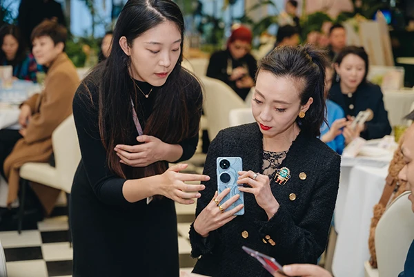 优秀女性齐聚一堂话时尚,总能呈现让人耳目一新的见解。华为学堂讲师以一场关于科技跨界时尚的精彩分享,揭开交流序幕。他分享了HUAWEI Pocket 2的科技美学价值。大溪地灰源于大溪地黑珍珠的高贵色泽,呈现浑然天成的莹润奢雅质感。外屏的珍珠双环设计,对称布局呈现和谐平衡的秩序之美。而手机搭载前沿技术,也引领美学潮流。优越的影像表达,让自拍实现前所未有的人像真实之美。防晒检测智能健康体验还可以让用户通过手机镜头精准检测紫外线强度、晒斑和化学防晒霜的涂抹情况,安享健康科技带来的精准护肤体验。