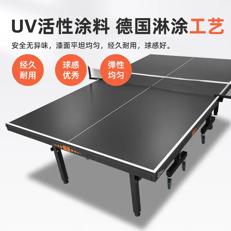 这款球桌的先进淋涂工艺,采用德国技术,确保了安全无异味,同时提升了耐用性。折叠移动设计,让球桌在节省空间的同时,稳固性丝毫不减。50mm的加粗支撑脚,保证了球桌的稳定性,即便在激烈对抗中也不会晃动。