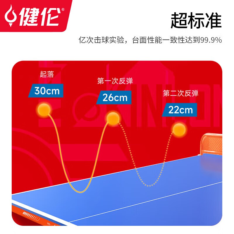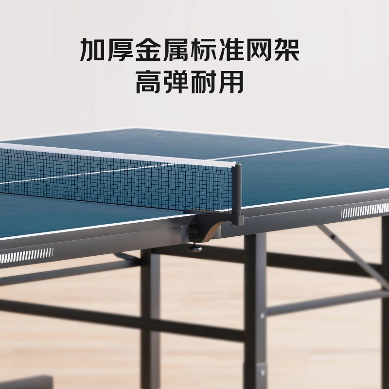 值得一提的是,球桌采用14层辊涂水性漆,经过科学均匀烘烤,面板无痕且高弹高硬度,能够提供专业级的比赛体验。同时,配备的JPT300加厚金属标准网架和含棉耐用球网,确保了球网的高弹性和紧绷度,不会出现跑线问题。
