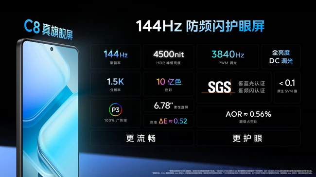 主流旗舰同款 C8 屏幕 好看还护眼