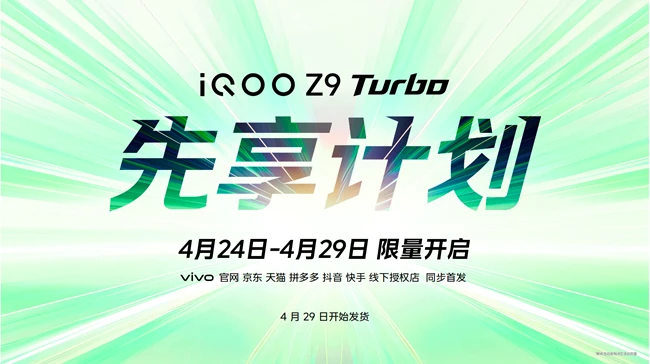 4 月 24 日,iQOO Z9系列全渠道开启预售。iQOO Z9 与 Z9x 将于4月 29 日10:00正式开售。Z9 Turbo 将于5 月 7日10:00正式开售。Z9 Turbo先享计划现已开启,即刻下单,享4月29日优先发货,先到先得!