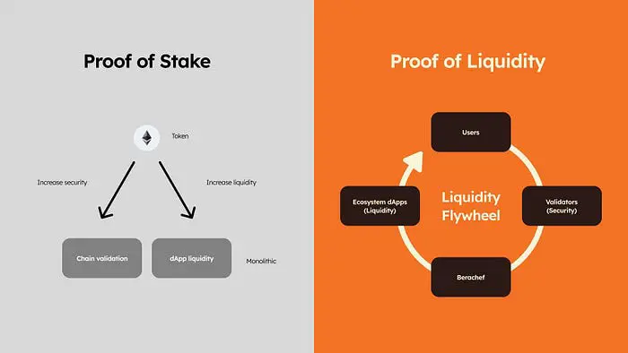 有几个关键词可以描述 Berachain,但最重要的概念无疑是 PoL (Proof-of-Liquidity)。PoS 的最大问题在于负责网络激活和稳定的代币直接与网络参与者的奖励Hook。这在流动性和网络安全之间造成了显著的不平衡。