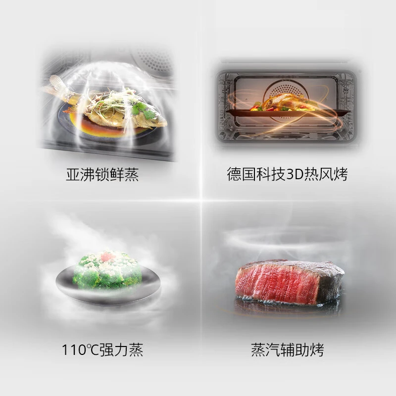 这款产品采用了1500W大功率设计,能够迅速产生高温蒸汽,实现快速烹饪,同时保持食物的营养与鲜美。其独特的360度热风循环技术,确保腔体内温度均匀,让烹饪效果更佳。值得一提的是,EF1.i具备4档蒸汽模式,可根据不同食材自动匹配蒸汽水量,让烹饪变得更加简单。
