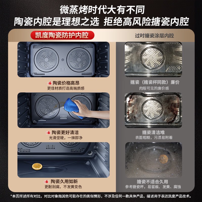 值得一提的是,这款蒸烤一体机采用了6.9寸TFT幻彩交互屏,操作直观便捷,让你在烹饪过程中也能享受到科技带来的乐趣。其搪瓷内胆与304不锈钢的材质,不仅耐用,更能确保食物的安全与健康。