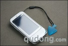 在手机机身四周的按键设计还是一个让很多人会比较看重的地方,金立M500的机身四周比较简洁,没有太多复杂的设计,尤其以机身顶部的按键最为丰富,分别为USB数据线/充电器插孔、标准的3.5mm耳机插孔以及电源键,最右侧还有一个手机挂饰孔,在金立手机包装盒内赠送的一个鱼形挂饰正好可以装饰在这里,而且这个鱼形挂饰还可以当作手写笔来进行触屏操作,非常的贴心。