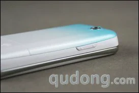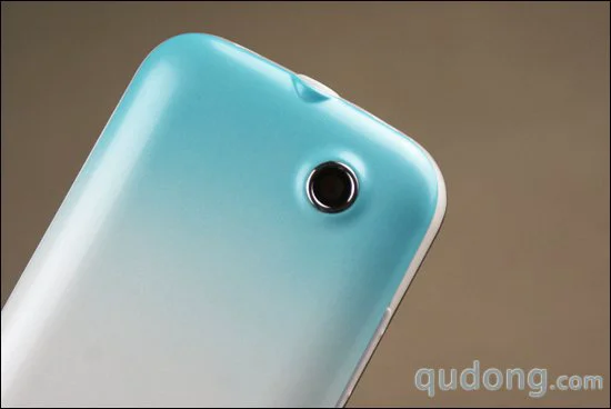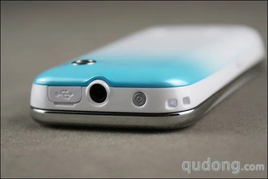 前边笔者已经介绍过,机身背部采用了淡蓝色渐变的喷漆设计,看上去清新时尚,一枚由一圈银金色金属保护的300万像素的摄像头就被这淡蓝色所包围,在手机的背部下方是双鱼型外放扬声器,M500作为一款时尚音乐手机,这样的设计不仅保证的铃声音量充足,而且音质效果也极为动人。