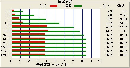 我们先来看看它的传输速度如何。如图可见,T11 RK的最快写入速度为4132Kb/s,最快读取速度为8426Kb/s。