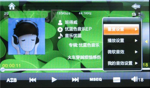 在播放菜单内,T11 RK支持专辑插图功能,并且可以自动识别插图。机内自带多个EQ效果,并提供自定义效果的设置。